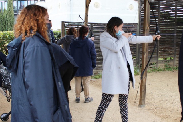 Por otro lado, los adultos, visitaron los talleres de la Fundación para conocer de primera mano, el trabajo que realizan las personas con discapacidad intelectual en la Fundación A LA PAR y se animaron a realizar un taller de posavasos de madera dirigido por los profesionales del taller de pintura decorativa y uno de tiro con arco, con los monitores de Fundaland.
